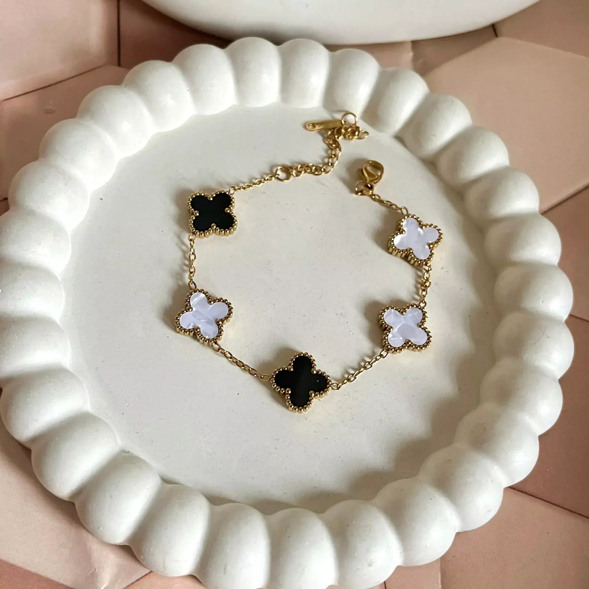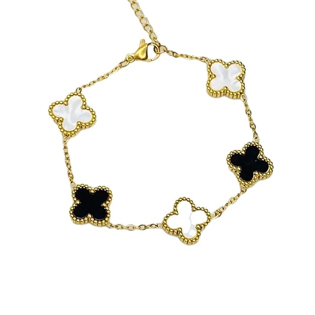 Add a touch of charm and timeless style to your wrist with the Black & White Stainless Steel Clover Bracelet, a perfect blend of elegance and symbolism.
