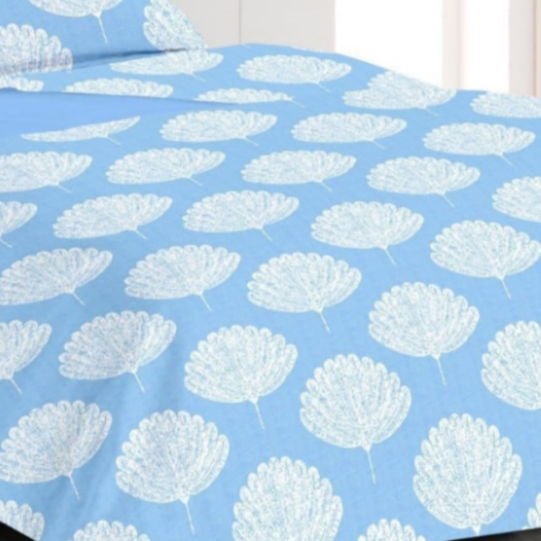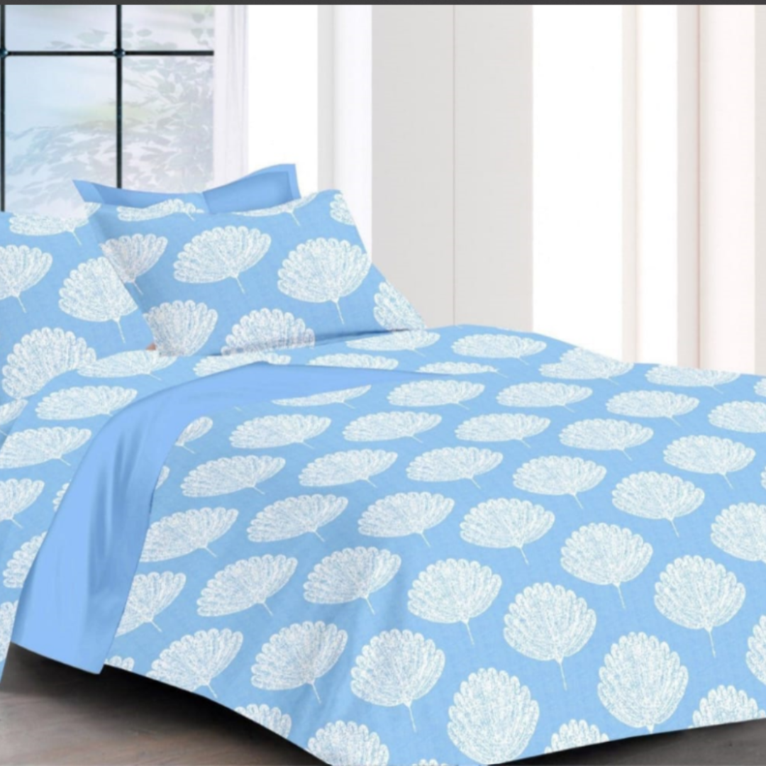 Blue Floral Printed Cotton Double Bedsheet with 2 Pillow Covers