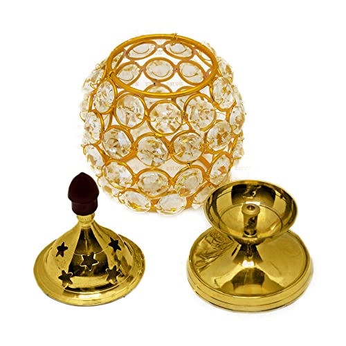 Item Name: Pure Brass Crystal Glass Diya.