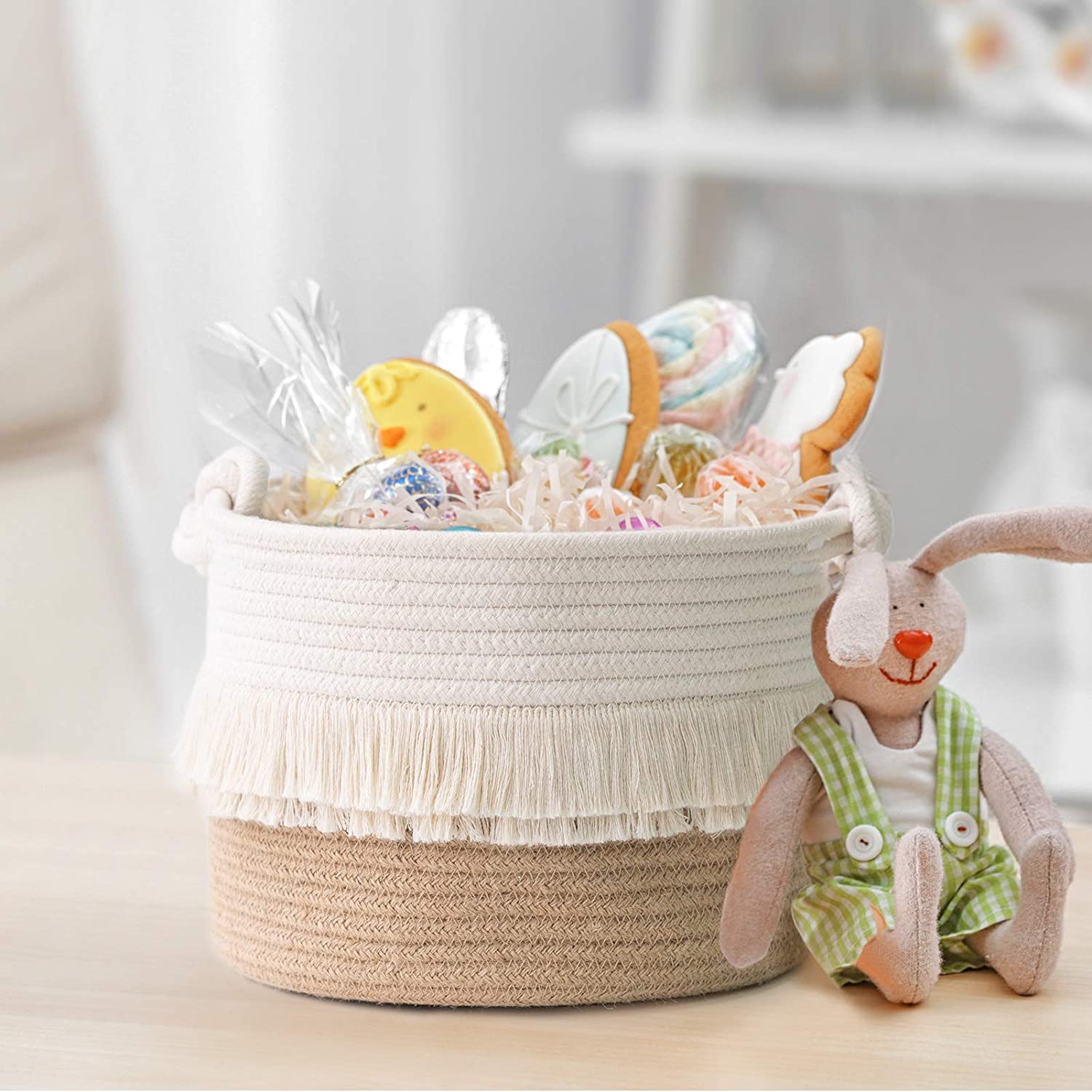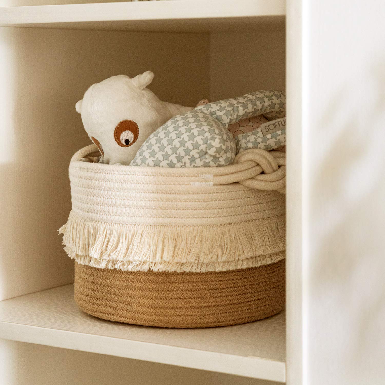 Small Woven Storage Baskets Cotton and Jute Rope Decorative Hamper