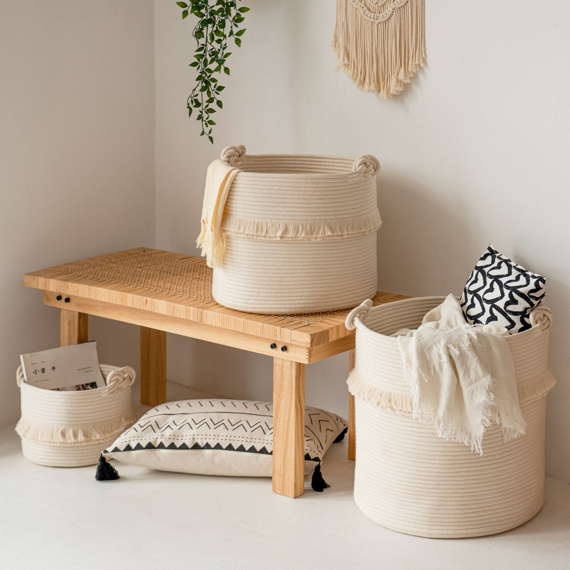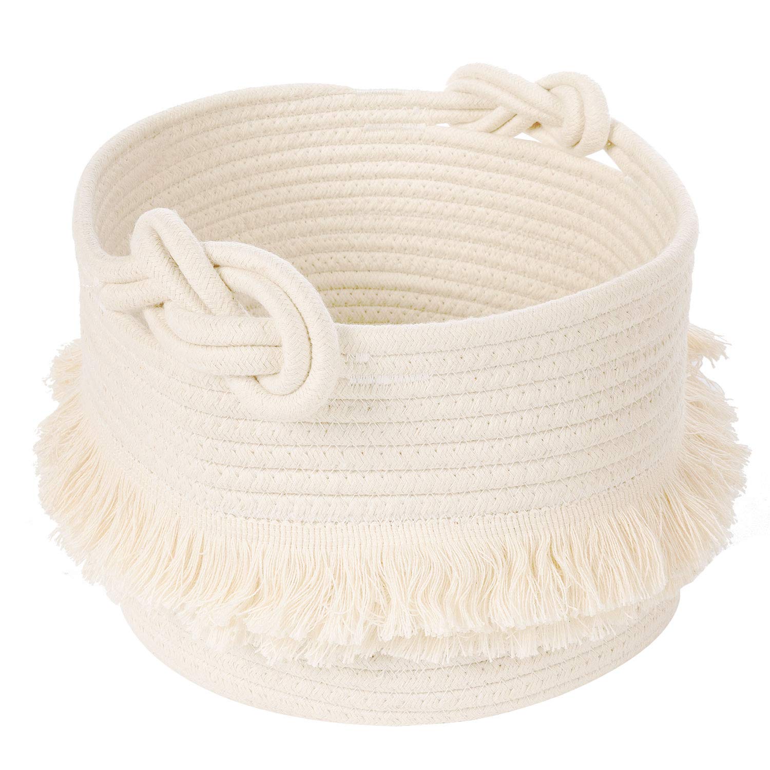 - HIGH QUALITY: Our storage basket is made from strong cotton woven rope; organic cotton rope, no chemicals, has good resilience, safe and healthy; this elegant, stylish white material is attractive and durable