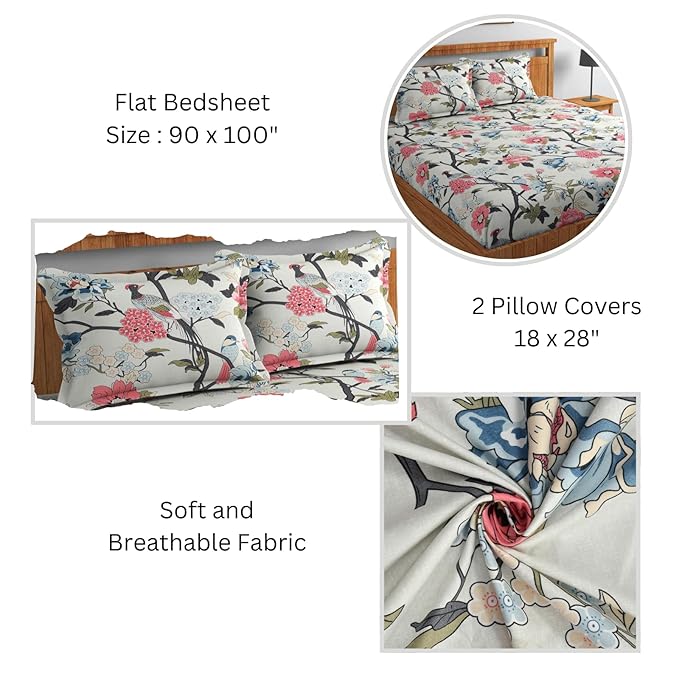 Printed Design: The bedsheet features a stylish printed design that adds a touch of elegance to your bedroom decor.