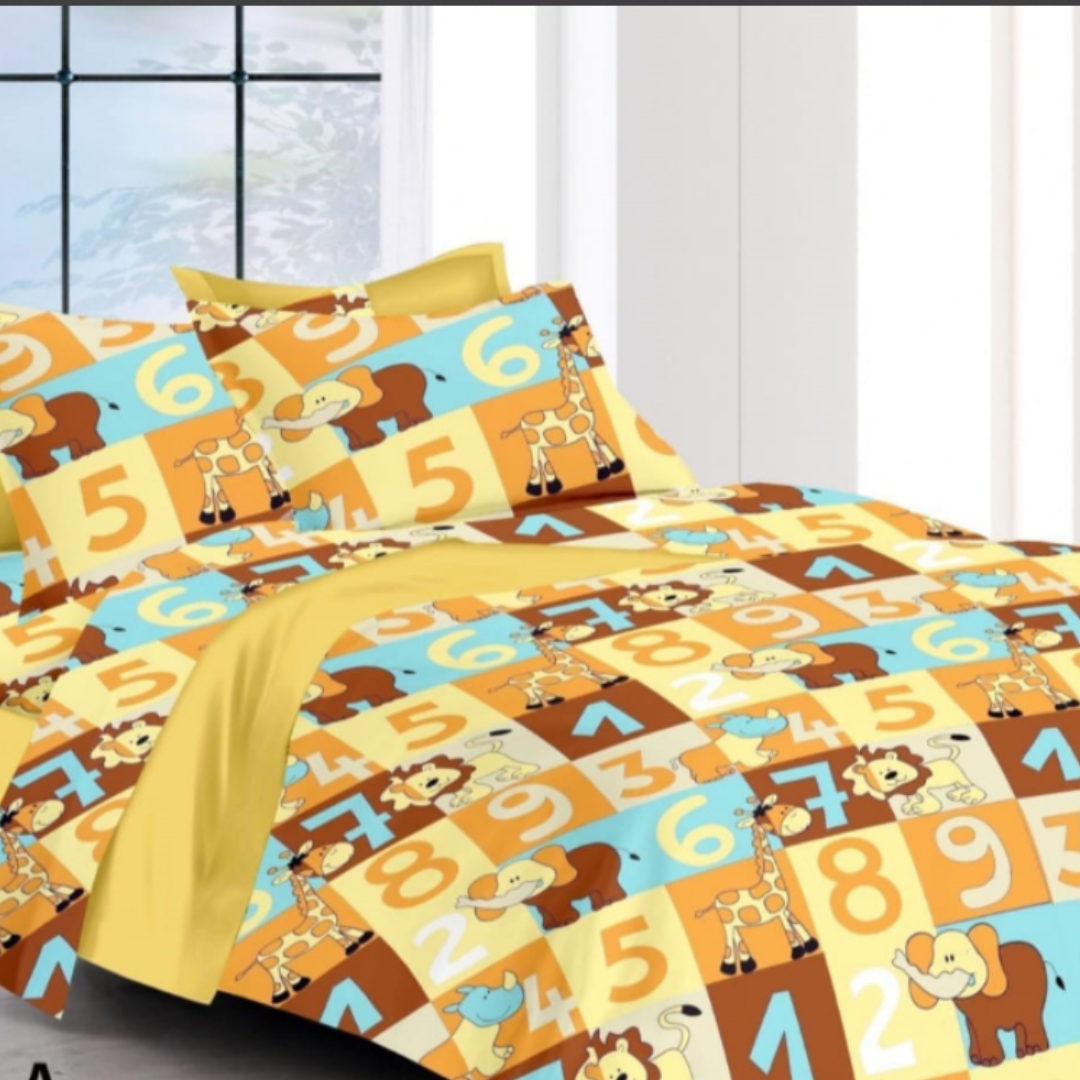 Yellow Giraffe Print Cotton Double Bed Bedsheet with 2 pillow Covers